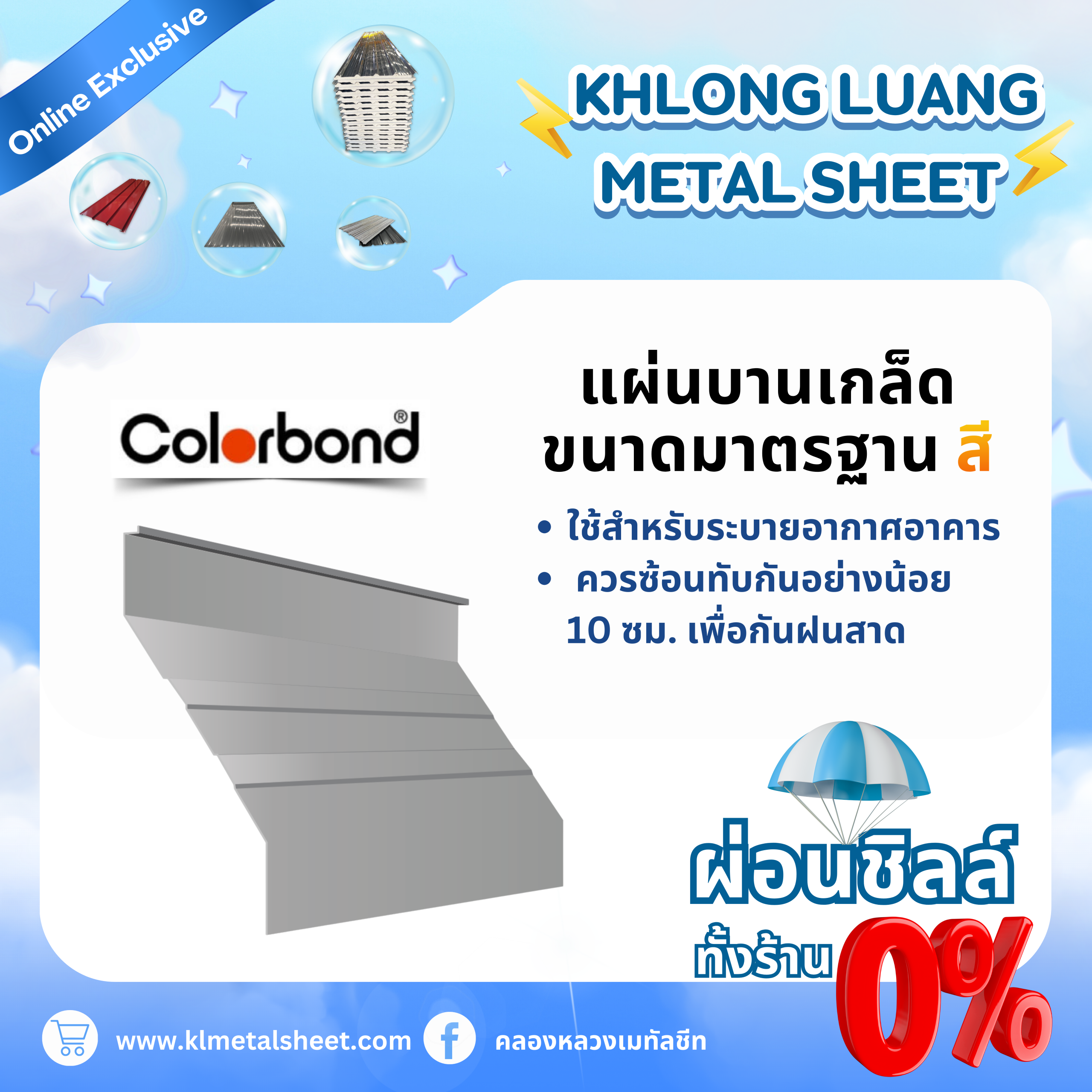 -แผ่นบานเกล็ดขนาดมาตรฐาน ความหนา 0.51 มม. Colorbond(BlueScope) เหล็กเคลือบสี แผ่นบานเกล็ด หรือแผ่นช่องลม ติดตั้งเพื่อเสริมระบายอากาศภายในอาคาร ทำหน้าที่เป็นช่องลมของผนังอาคาร และป้องกันฝนสาดเข้าภายในอาคาร