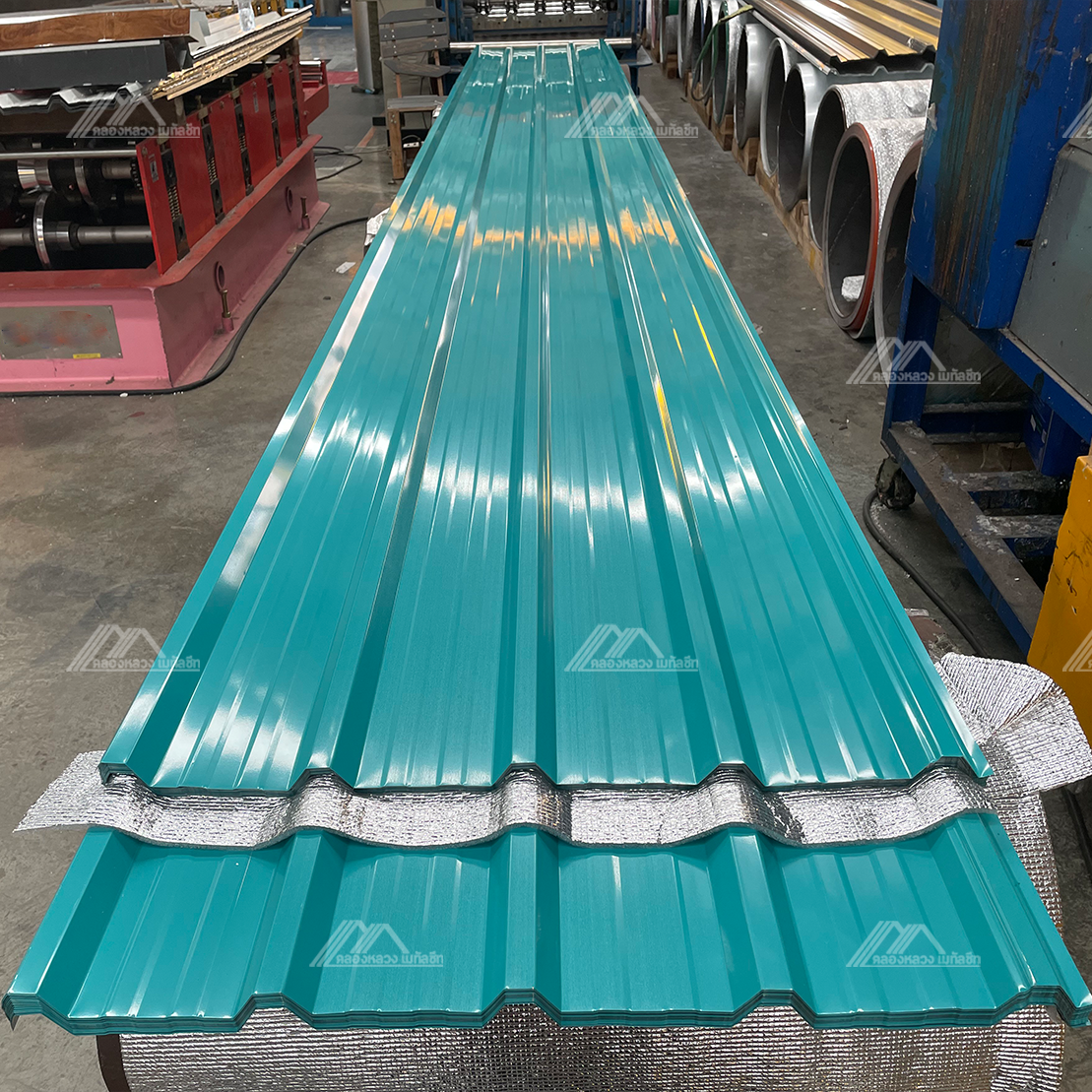 – แผ่นหลังคา Metal Sheet รุ่น T-760-5 แบบเปลือย ความหนา 0.35 มม. แผ่นเหล็กเคลือบโลหะผสมระหว่าง อลูมิเนียมกับสังกะสี ซึ่งประกอบด้วย อลูมิเนียม 55% และสังกะสี 43.5% และเคลือบด้วยสีคุณภาพสูงชั้นนอกสุด ต้านทานการกัดกร่อน เหมาะสำหรับงานภายในและภายนอก งานผนัง งานรั้วและงานหลังคา
