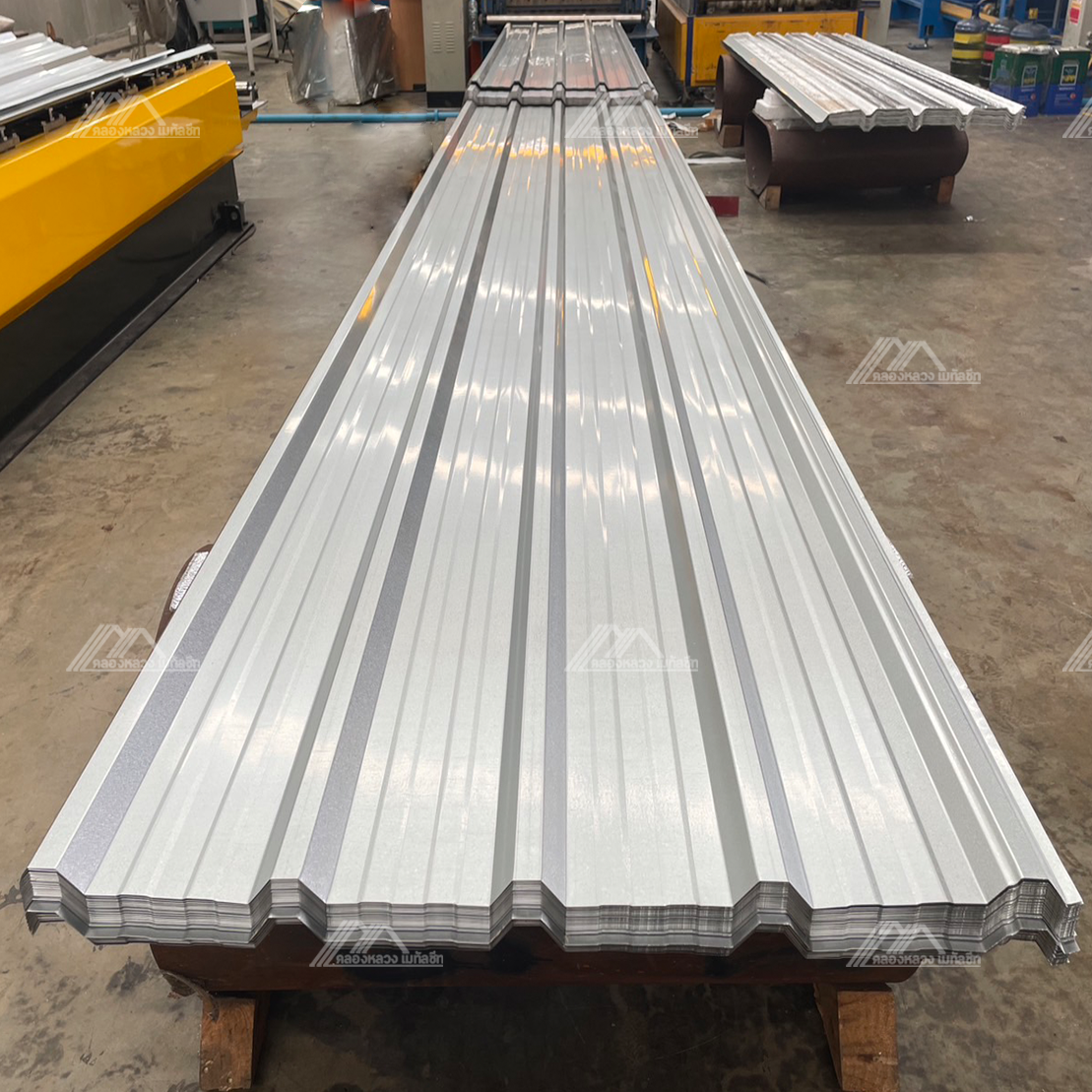 – แผ่นหลังคา Metal Sheet รุ่น T-760-5 แบบเปลือย ความหนา 0.20-0.47 มม. แผ่นเหล็กเคลือบโลหะผสมระหว่าง อลูมิเนียมกับสังกะสี ซึ่งประกอบด้วย อลูมิเนียม 55% และสังกะสี 43.5% มีประสิทธิภาพในการต้านทานการกัดกร่อน เหมาะสำหรับงานภายในและภายนอก งานผนัง งานรั้วและงานหลังคา