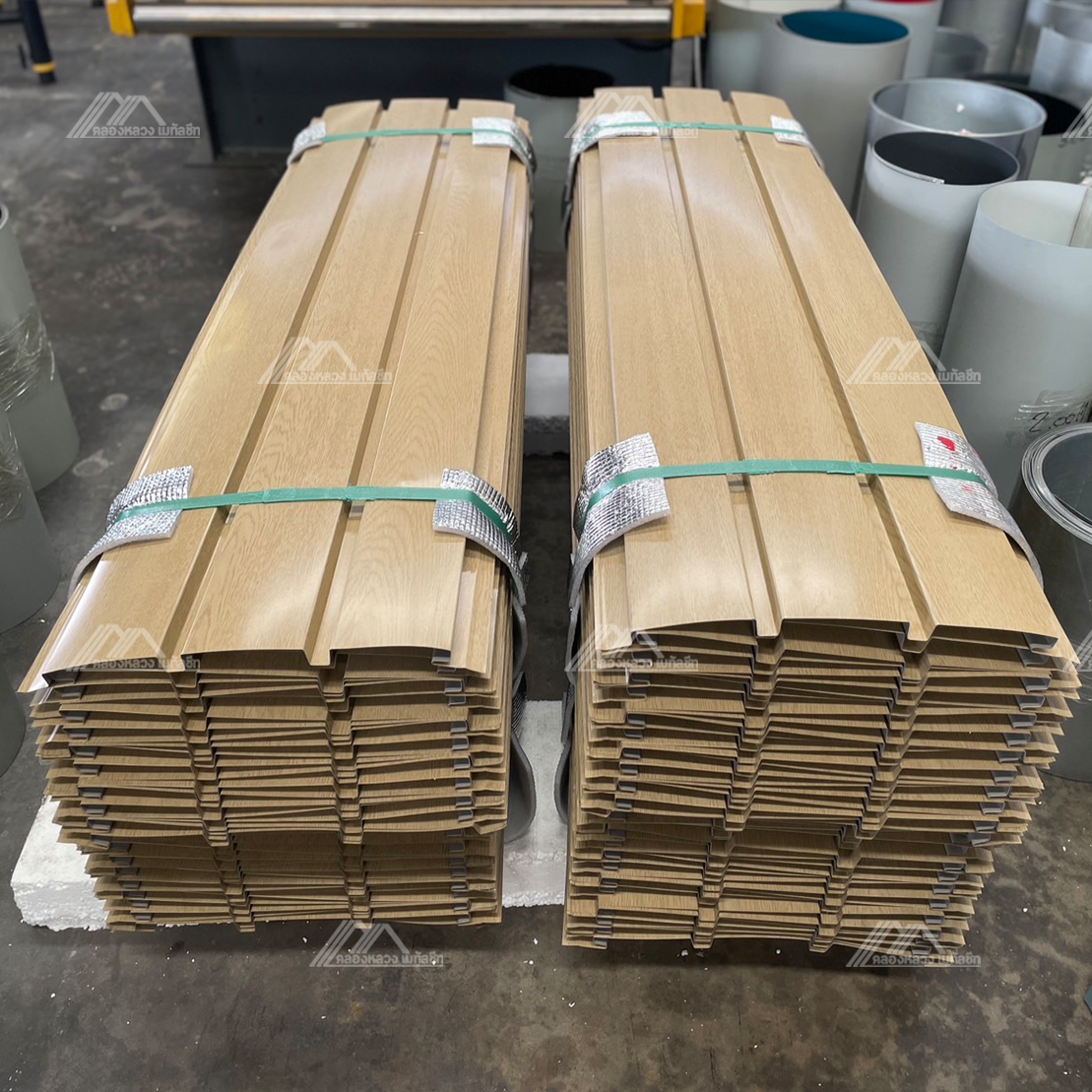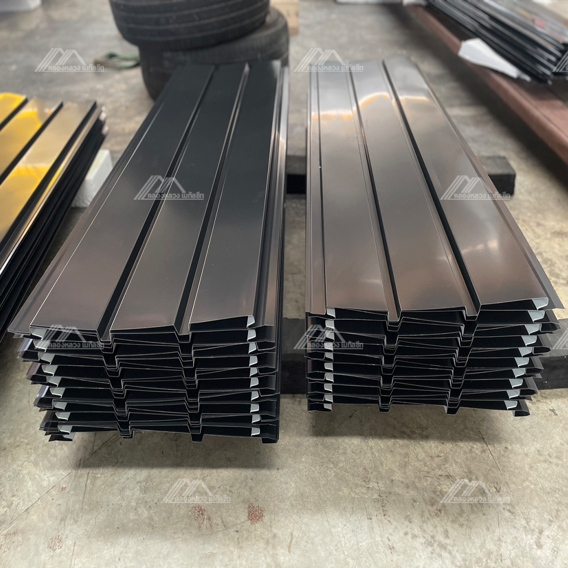 -Metal Sheet ลอนฝ้า-ผนัง ความหนา 0.47 มม. ลอนผนัง 3 ลอน มีความสูงสันลอน 1.5 ซม. ความกว้าง 33.6 ซม. ทับซ้อนเหลือ 33.3 ซม. เหมาะสำหรับงานภายในและภายนอก งานผนัง งานฝ้าและงานรั้ว