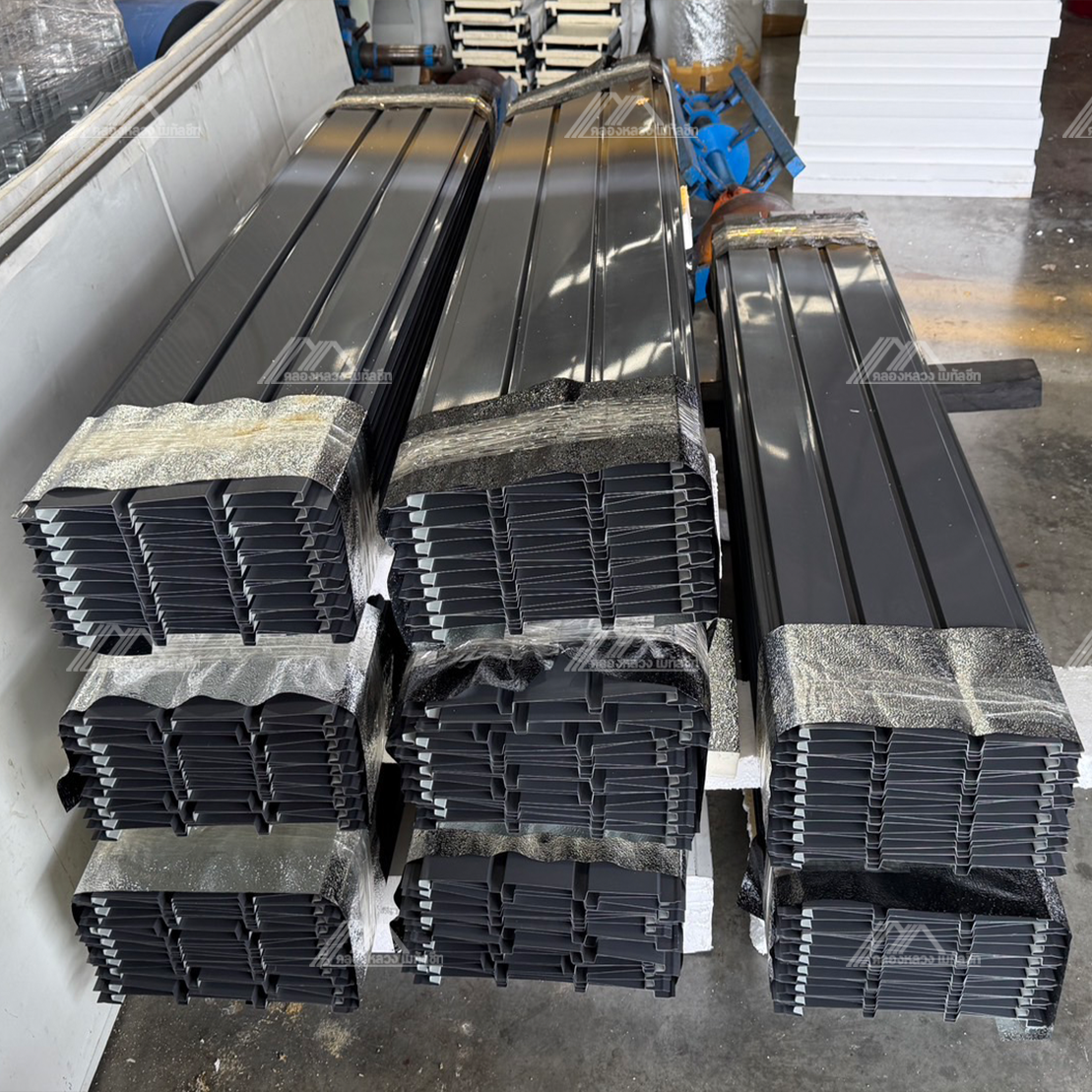 -Metal Sheet ลอนฝ้า-ผนัง ความหนา 0.47 มม. ลอนผนัง 3 ลอน มีความสูงสันลอน 1.5 ซม. ความกว้าง 33.6 ซม. ทับซ้อนเหลือ 33.3 ซม. เหมาะสำหรับงานภายในและภายนอก งานผนัง งานฝ้าและงานรั้ว